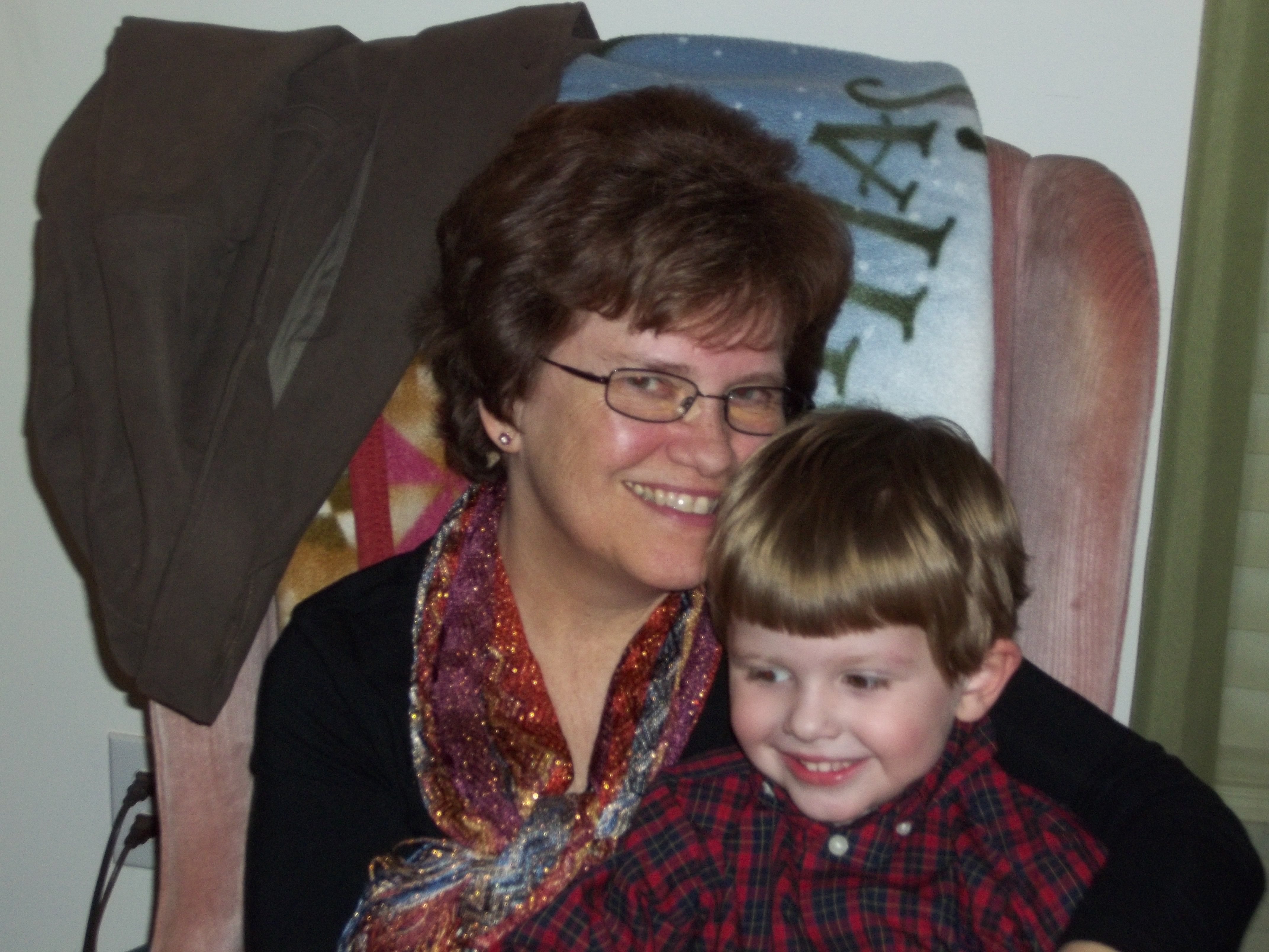 from time to time. We have tried to prepare him for this, but it’s hard for the little guy to realize how long this will take. I will certainly lose my hair and have bought a wig and three hats. Michael calls my wig “Grammy’s other hair”. I even let him try it on and he proceeded to run around my house laughing hysterically. It was a sight to see.